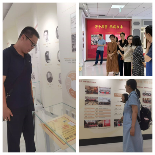 随后,大家参观了展示学校探索构建特色鲜明的法学人才培养体系的部分。多年来,中国政法大学不断创新教学模式,优化课程设置,致力于培养具有坚定理想信念和社会责任感的法治人才。通过一系列图文并茂的展览,党员教师们了解到学校如何结合国家需求,逐步建立起一套完整的法学教育体系。