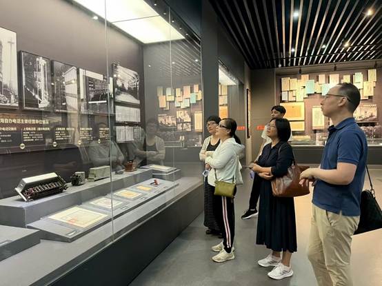 二楼展厅内,曾就读于北京邮电大学经济管理学院的戴建华老师,给师生们补充介绍了一些信息通讯技术商业应用的经管原理和制度基础,更进一步深化了“教师观世界”红色足迹寻访团一行的知识收获。