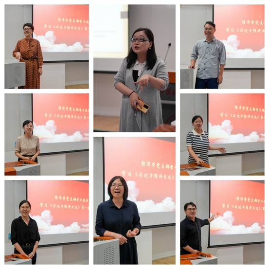 作为经济系青年教师的代表,经济系副主任周敏丹老师谈到,“习近平经济思想立足新发展阶段,引领高质量发展,是中国特色社会主义政治经济学的最新成果。作为一名高校党员教师,我深感责任重大,必将其核心要义融入政治经济学及相关课程的教学科研中,为构建中国自主的经济学知识体系贡献一份力量。”
