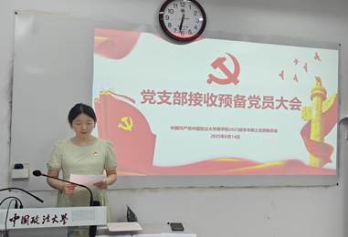 最后,徐庆老师对三位新接收预备党员表示祝贺,鼓励三名同学以党员标准严格要求自己,不断提高综合素质,发挥先锋模范作用,早日成为一名优秀党员。
