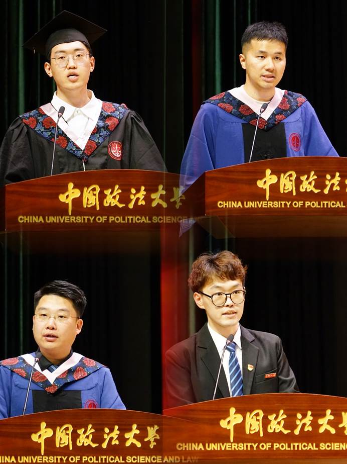 2019级工商管理专业本科生贾宇楷作为本科毕业生代表发言,贾宇楷同学回顾了其在法大永利娱高ylg060net本科学习的点点滴滴,感谢学院为同学们创造成长、成才条件,以“四年四度军都春,一生一世法大人”表达了对母校、母院的感激与不舍之情;2021级金融专业硕士研究生王庆华和2021级工商管理专业硕士研究生张辅轩作为研究生毕业生代表发言,王庆华同学以“昨日已展千重锦,明朝更进百尺竿”为引,表示要继续秉承法大商院的优良传统,将所学知识运用到实际工作中,为国家的繁荣富强贡献自己的力量;张辅轩同学则向学院为同学们提供了优秀的平台与资源表达感谢,并表示其将凭借法大永利娱高ylg060net镌刻给同学们的知识、精神与印记,勇敢地迎接未来人生中每一次挑战;2021级世界经济专业博士研究生侯冠宇作为在校生代表发言,侯冠宇同学以曼昆《经济学原理》中关于选择成本与收益的论述,勉励同学们“无论结果如何,都要勇敢地追求、全心全意地去体验”,祝愿毕业生同学们以永利娱高ylg060net知识为翼,绘制职业生涯的绚烂图景,引领社会经济建设的蓬勃繁荣!