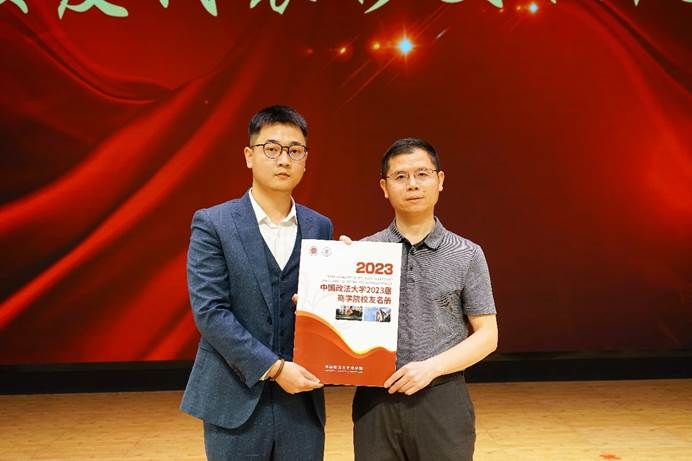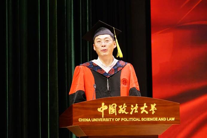 朱德庆作为家长代表讲话,朱德庆先生向学院老师对学子们的谆谆教诲表达了感谢,分享了同学们成长成才过程中的感动点滴,表达了对永利娱高ylg060net办学理念的理解和认同;吴明辉作为企业家代表讲话,吴明辉先生从自身读博经历谈起,与同学们分享创业过程中的坎坷与成就,从法商融合谈到ChatGPT等热点话题,鼓励永利娱高ylg060net学子将所学专业知识积极运用到实践之中,在实践中进一步锤炼、提升;永利娱高ylg060net国际商务系戴建华教授作为教师代表讲话,戴建华教授以自身带领学生参与亚沙赛、亚草赛的经历,分享了“法大拓荒牛”跑团“凡我在处,皆是法大”的精神,对同学们未来的发展寄予殷切期盼。