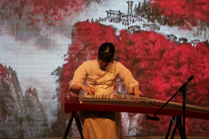 随后,金融工程2301班的张怡茜同学为我们带来了精彩的古筝独奏《井冈山上太阳红》,激昂的旋律、雄浑的气势带来了一场沉浸式的听觉盛宴。