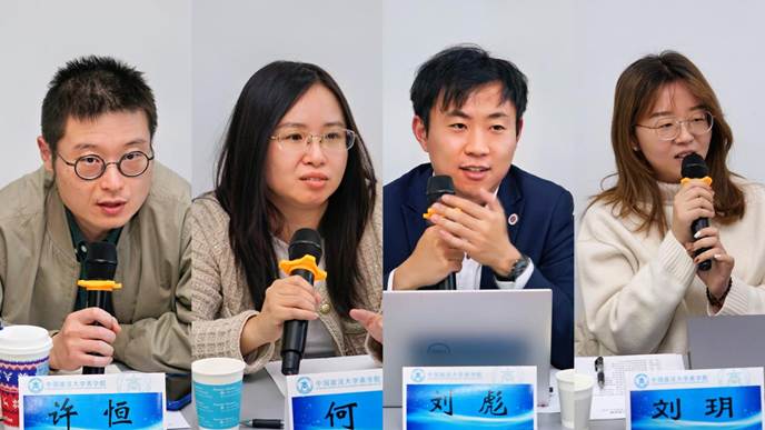 图:法商管理系副主任许恒、财务会计系副主任何顶、教师代表刘彪、教师代表刘玥