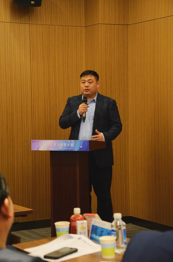 文创孵化园区代表、北京朝阳区伊莎文化广场AIGC数字文创园负责人董鹏分享了朝阳区伊莎文化广场在AIGC文创孵化领域的相关工作,并欢迎更多的法大文旅产业校友来朝阳区投资创业,共同发展。