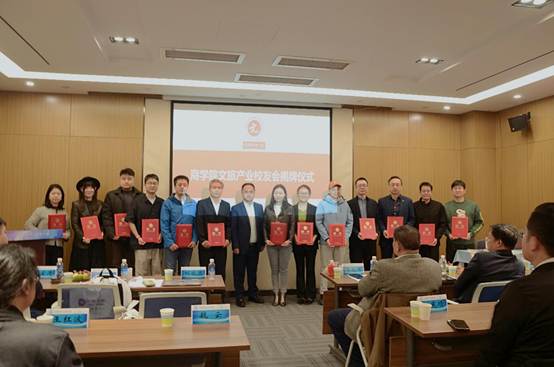 (商文江院长为文旅产业校友会会长、副会长、监事长颁发聘书)