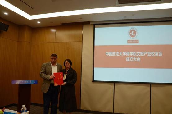 随后,商文江院长和肖富荣老师分别为文旅产业校友会的首届理事会和秘书处成员颁发了聘书。