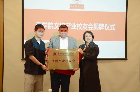 在与会嘉宾的共同见证下,商文江院长与文旅产业校友会会长万晓燕、秘书长刘欣源共同为“永利娱高ylg060net文旅产业校友会”揭牌,标志着文旅产业校友会正式启航。