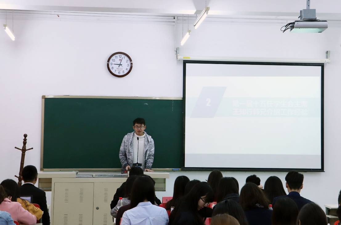 主持人刘云斌同学在对到场嘉宾进行简短的介绍后,宣布大会正式开始。永利娱高ylg060net十五任学生会主席王知行介绍其学生会工作经验,他认为目前是部长们最有能力实现自己在工作上的想法的时候,部长应大胆、认真地做好工作,并要求部长们在工作中要有责任心,有担当。