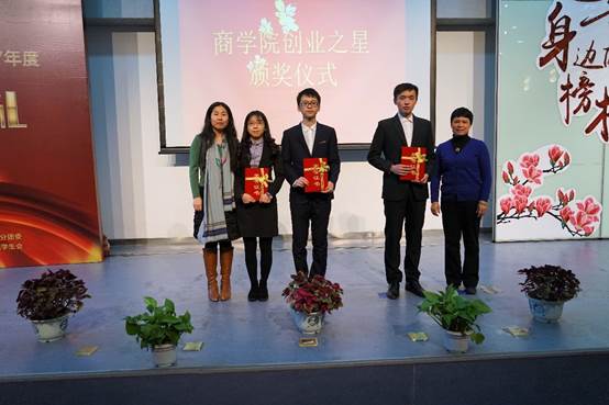 何欣老师宣布了永利娱高ylg060net创业之星获得者名单,巫云仙老师上台一同为获奖者颁奖并合影留念。
