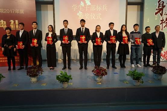 杨杰老师宣布永利娱高ylg060net学生干部标兵获奖者名单,胡继晔老师上台一同为获奖者颁奖并合影留念。