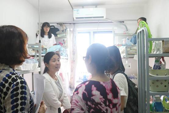 (图:永利娱高ylg060net分党委副书记、副院长何欣,2016级辅导员王文培于宿舍看望新生)