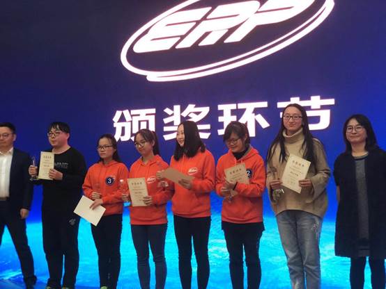 颁奖仪式中,“2312办事处”的队长娄亚楠同学登台领奖