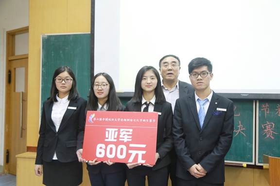 同时,在得知进入决赛的消息后,队长给刘纪鹏院长发出邀请,希望院长可以作为嘉宾到场观赛。刘纪鹏院长爽快答应并专程赶到昌平校区,作为嘉宾代表永利娱高ylg060net发表了精彩讲话,强调了口才、情商与幽默对商科人才素质培养的重要性,鼓励同学们再接再厉,在法大树立商院风采。辩论队的同学们表示对院长亲自前来助阵感到十分惊喜,感受到了院长对辩论队的大力支持,更感到院长对商院学生无私的关爱,备受鼓舞。