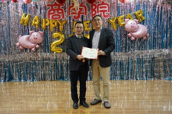 副院长杨杰、分党委副书记兼副院长何欣分别为肖富荣、徐庆颁发中国政法大学“工会工作积极分子奖”证书。