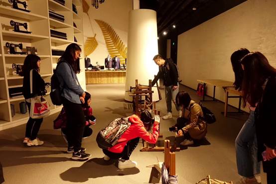 经济系师生首先来到了依文·中国手工坊展示区。通过讲解员的详细介绍,大家了解到展示区分为四层,分别为一层“根基”、二层“树干”、三层“茂叶”、四层“云端”。“根基”模块包括魔幻长廊、大型活动展示空间,整体风格现代而又蕴含古雅醇厚的内涵,1500平米、6米挑高的魔幻长廊结合空间艺术、时尚信息发布以满足看、听、嗅、味、触的全感官之旅,成为吸引人潮的世界级奇观,使活动发布拥有灵活宽敞的环境布置。“树干”模块空间、高端沙龙静态展示区域、产品全方位体验厅 装修奢华舒适,艺术气息浓郁,体贴地为贵宾提供了相对独立的空间。“茂叶”模块的独立创意空间、10人VIP室,以及“云端”模块的高端商务区,展现传统工艺个性、颇具设计感。师生们充分地领略了传统手工艺带着泥土气息的美和依文集团将现代设计融入传统技艺的出众观点以及努力促进中国文化精髓传承的精神。