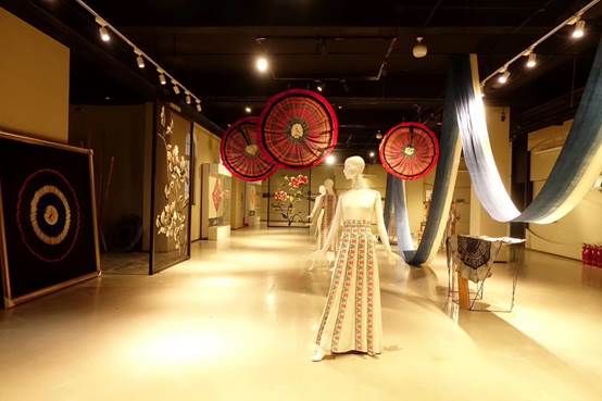 很有幸和导师支老师以及同学们一起参观了依文的中国传统手工艺基地。依文作为北京市场的高端男装品牌,从94年开始创办了旗下EVE DE UOMO,NOTTINGHILL,Kevin Kelly等品牌。目前又与甘肃省进行了“文旅融合+深山集市”的合作。参观依文城堡时,我们主要看到的也是“民间绣”主题展出。依文深入发掘贵州当地绣娘的纯手工纹样,并将这些纹样进行提取,与现代商品融合,展示出一种别样的美。另外,在互联网经济下,依文也开展了线上渠道,开发了有关纹样的文创产品,生态产品等,激发了企业在目前经济环境下的活力。另外,依文城堡占据园博园的地理优势,也同时带给企业更多的合作与交流机会。通过这一次参观,我不仅体会到了服装产业的运作流程,更深入地了解到了依文这一品牌的企业文化,承载于我国传统手工艺的延续,正是依文发展的活力与机遇之所在。