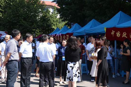 图:校党委书记胡明、校长马怀德、校党委副书记兼副校长常保国、副校长李秀云视察永利娱高ylg060net迎新展台
