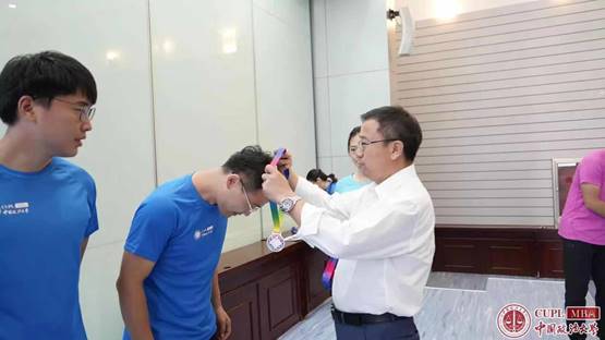 杨杰老师、胡继晔老师为团队第一名颁发奖牌