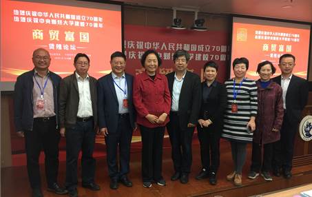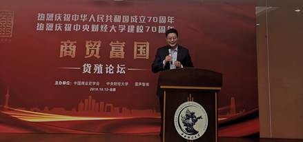 2019年10月12日,为庆祝中华人民共和国成立70周年,中国商业史学会、中央财经大学和国声智库联合举办“商贸富国”《货殖论坛》。与会人员近百人,来自商务部、商业史学会、中央财经大学、中国社会科学院、北京大学、清华大学、北京师范大学、武汉大学、南京大学、上海交通大学和中国政法大学等政府部门、国内高校、科研机构、智库和媒体等。