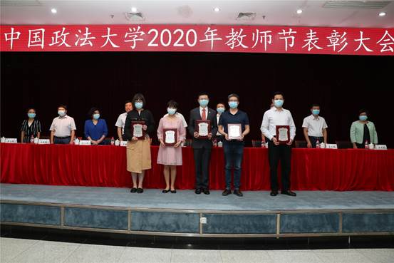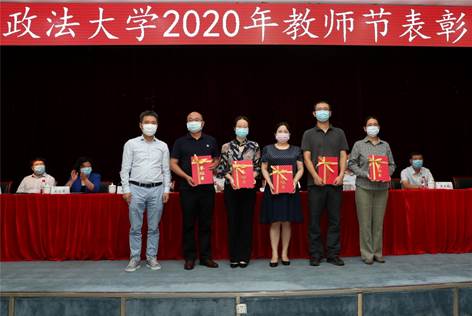 为庆祝第36个教师节的到来,中国政法大学2020年教师节表彰大会于9月10日在昌平校区隆重举行。全体校领导、获奖教职工代表、离退休教职工代表、学校董事代表、各院部处负责人、新入职教师代表和学生代表出席会议,副校长冯世勇主持会议。大会围绕“立德树人,奋进担当”的主题,表彰2019-2020学年度学校在教学、科研、管理、服务等各个方面涌现出来的优秀集体与先进个人。校领导和学校董事代表为获奖集体和获奖教师代表颁发证书,与会师生向获得表彰的优秀集体与个人送上了热烈的掌声和诚挚的祝贺。永利娱高ylg060net获得了教学成果奖一等奖一项,三等奖两项,青年教学名师1人,教学优秀奖4人,优秀教学集体1个,李欣宇书记与获奖优秀教师代表参加了表彰大会。