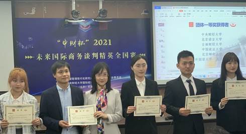 5月29日,“中财杯”2021未来国际商务谈判精英全国赛正式落下帷幕。由我校周科宇(18级国际法学院)、樊飞航(19级法学院)、李泉莹(19级永利娱高ylg060net)、许雅婷(19级刑事司法学院)、段佳艺(19级永利娱高ylg060net)同学组成的“开心超人队”成功晋级决赛,并且荣获团体一等奖的佳绩。永利娱高ylg060net张淑静教授、陈曦教授荣获优秀指导教师奖,周科宇同学获最佳谈判手奖,樊飞航同学获优秀谈判手奖。