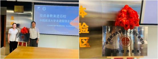 根据研究生院“关于批准2021年专业学位示范性教学案例、联合培养基地建设项目的通知”(法大研字〔2021〕20号),国信证券北京投教基地被批准为中国政法大学专业学位联合培养基地,并于2021年6月16日下午在国信证券投教基地成功举办揭牌仪式。永利娱高ylg060net学术委员会主席、金融专硕中心负责人胡继晔教授、永利娱高ylg060net资本金融系主任程碧波副教授、副主任李大夜、洪智武、永利娱高ylg060netMBA教育中心招生部主任孟令星、永利娱高ylg060net本科辅导员贾娜琳捷与金融专硕、金融学硕、MBA等共50余人参加了此次活动。