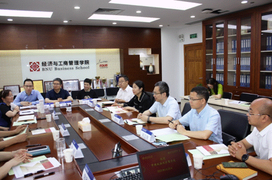 6月23日,永利娱高ylg060net党委书记李欣宇、副书记何欣、副院长刘志雄、副院长熊金武、学术委员会主席胡继晔、院务助理巫云仙、资本金融系主任程碧波、工商管理系副主任顾凡一行8人赴北京师范大学经济与工商管理学院调研。北师大经管学院党委书记孙志军、副院长蔡宏波等相关负责老师参加会议。