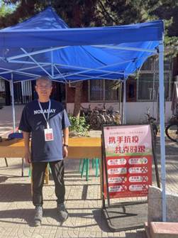 教师志愿者郭俊豪、叶向红、樊跃娟、王辉、贾娜琳捷、冯惠、徐庆、霍达、高秋明、张如欣、陈潇婷和洪智武等轮流到表厂、成于思和菊园党员先锋岗值班,引导学生按规定路线往返学校;毕业班辅导员郑益群驻校期间,往返于学校和表厂,为表厂值班老师订餐、值班、办理毕业年级事务,并帮助无法入校的老师们办理各种业务;MBA学工部孙晓桐作为班主任和学院路封控楼层层长,在封校期间驻校三周,除常规学生工作,每天值守核酸现场,早晚校园巡视一小时,24小时关注封控区学生,始终与学生在一起,帮助多名学生完成行李打包寄运,帮助毕业生拍摄毕业照,解决学生实际需求;MBA中心学工部陈璐驻校6天,担任新一号女生宿舍楼一层层长,负责学生核酸现场巡值、校园巡值。