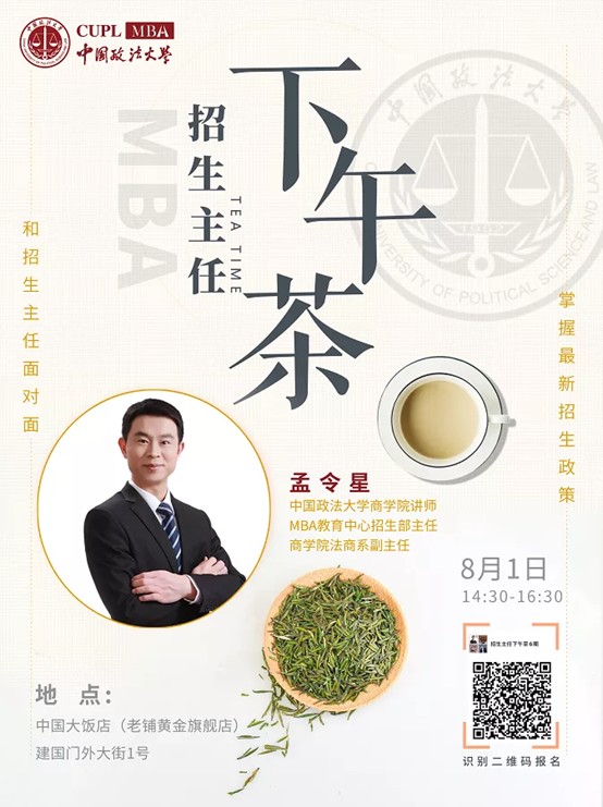 孟令星:永利娱高ylg060net讲师、MBA教育中心招生部主任、法商系副主任,执业律师、曾任检察官、兼职董事,清华大学博士、中国人民大学博士后、美国哈佛大学进修学者。工作经历从民营企业到国有企业到外资企业,再到创立两家公司;从行政机关到司法机关再到事业单位。擅长如何通过学习规划改变人生轨迹,如何通过职业规划提升职业路径。欢迎意愿报考中国政法大学MBA的同学以及对法律、商业、金融、文化感兴趣的各界朋友,在惬意的午后时光,优雅轻松的氛围中,品味茶茗幽香,与招生主任面对面,聊聊招生政策,聊聊备考技巧,聊聊学习规划,聊聊职业规划,聊聊商业,聊聊金融,聊聊法律,聊聊文化,邂逅一个收获满满的午后!