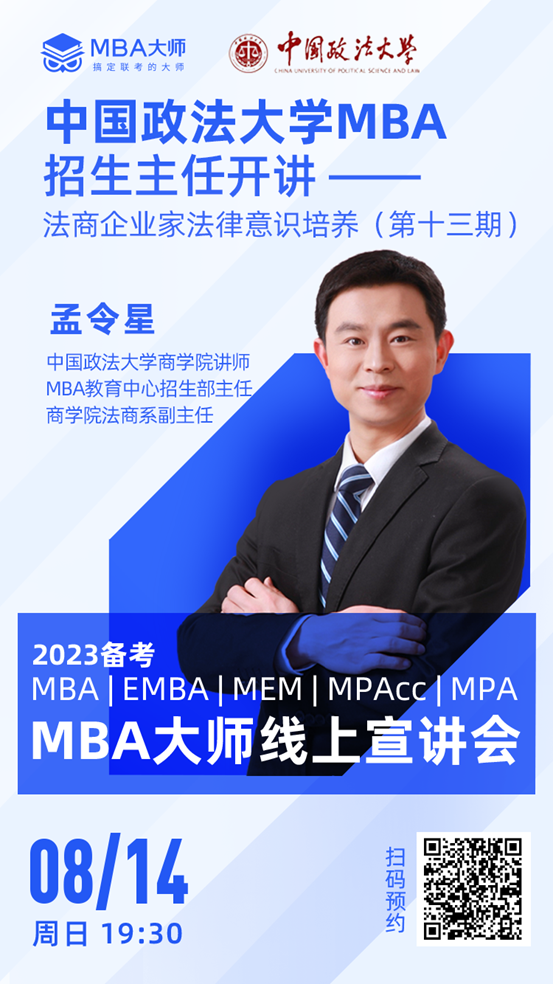 想要了解更多中国政法大学MBA详情,欢迎锁定【中国政法大学之法商法律意识培养直播间】快快点击APP首页“近期直播”报名吧!