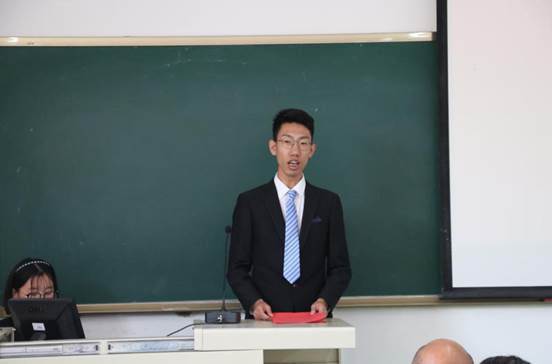 紧接着,刘宜鑫上台演讲。他总结了自己一年来参与的各项活动,反思了自己从活动中发现的不足以及提出了相应的解决措施。对于学生会的工作展望,他希望能充分利用微信推送以及直播平台,加强审核以及完善各项活动的制度,并且表示有自信能带领好学生会不断前行。