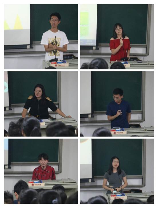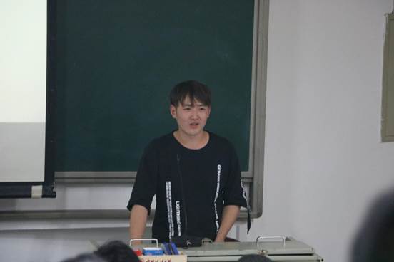 首先,2016级学生虎佳明向2018级新生分享了自己的学习经验。他谈到同学们要认真学习政治、数学和英语三门课程,对今后的成长很有帮助,鼓励他们从大一开始学习论文的写作,多和老师交流,提高自己,告诉同学们参加社团有助于结识朋友和提高工作能力,并且强调了要学会平衡学习和生活。