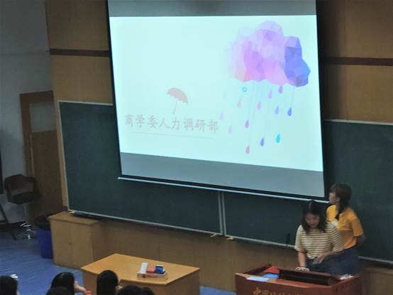 随后,进入学院社团宣讲环节。院学委会、学生会各部门,运动队以及辩论队分别派出代表进行宣讲,各自对部门的职能与活动内容进行了简介,鼓励新生在大学期间参与各类学生社团,培养锻炼各方面能力。