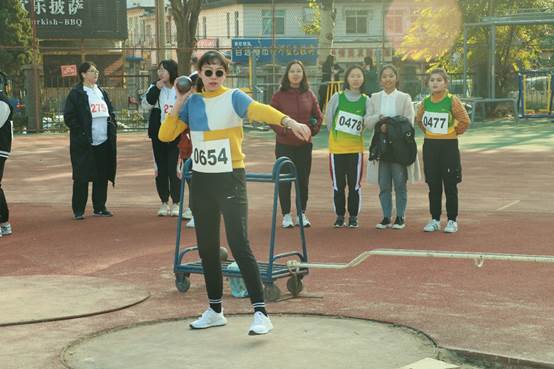 (图:商院选手参加掷铅球项目)