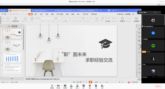 3月29日下午,为做好2020届毕业生就业工作,我院积极联系、邀请已毕业的优秀校友和已经找到工作的毕业生进行分享,永利娱高ylg060net学工办组织“职”面未来系列就业指导活动第六场——“求职经验交流会”。近60名同学参加了本次讲座。毕业年级辅导员贾娜琳捷、李琼华和MBA中心学工部陈璐老师参加了活动。活动由2016级本科生辅导员徐庆主持。