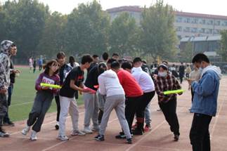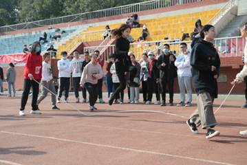 跳大绳、无敌风火轮、绑腿跑、珠行万里等其他趣味项目也是精彩纷呈,在一片欢声笑语中有序进行着。跳大绳的比赛中节奏的掌握很重要,参赛者们都全神贯注以求抓住每次起跳的好时机,最终经济2001班获得第一名。“无敌风火轮”的参赛者们一同站在一块环形布料中前进,因为被布遮住看不到前方,参赛者们的彼此配合便至关重要,最终国商2001班荣获佳绩。在绑腿跑比赛中,一组六位同学调适好一致的步调,迈开相同的步伐,展现出自己最佳的状态,荣获第一名的是金融工程2001班。“珠行万里”的比赛靠的是稳中求胜,参赛者们一边控制好平衡,一边疾步如飞,第一个冲过重点的是金融工程2001班。