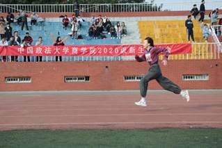 今年的秋天冷得很早,早晨则更甚,但志愿者们已经早早地来到操场,在各自的岗位等候运动员们的到来了。率先开始的是激动人心的径赛项目,男子100米决赛打响了运动会的第一枪。随后女子100米决赛、男子400米决赛、女子400米决赛、男子200米决赛、女子200米决赛以及男女混合4*100米接力决赛相继开始。一声声枪响下,运动员们在跑道上奋力奔跑,观众席上呐喊声不绝,热烈的氛围渐渐驱走了秋天的寒意。最终,国商2001班付兴振、工管2003班缪伊妍分别获得男女组100米决赛第一名;工管2001班曹瑀杰、国商2001班刘凌菲分别荣获男女组200米决赛第一名;国商2002班兰庆贸、工管2003班法昕分别夺得男女组400米决赛第一名。此外,工管2003班在4*100米混合接力赛中拔得头筹。