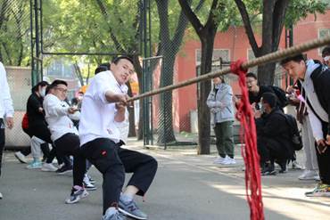 上午10:30,万众期待的趣味团体项目终于登场。拔河队员们早已摩拳擦掌、整装待发,随着一声哨响,加油声、呐喊声齐发。拔河比赛共分为三轮,经过激烈的角逐,经济2001班摘得桂冠。