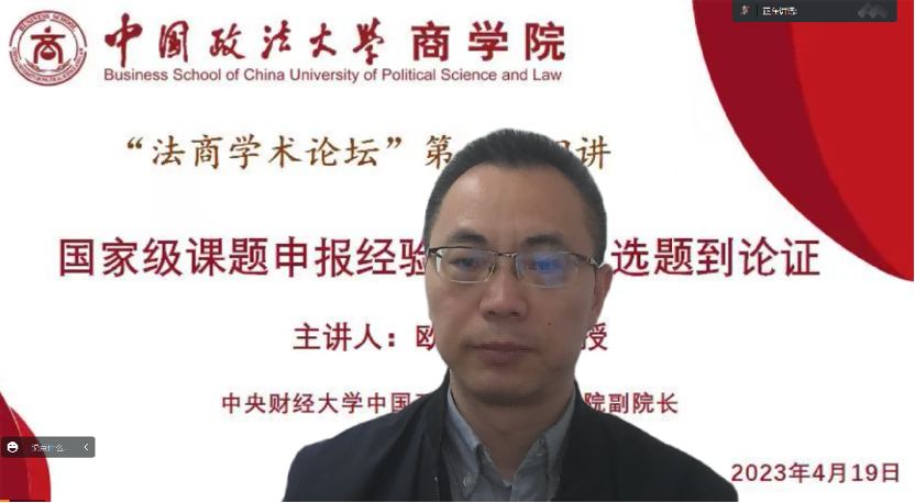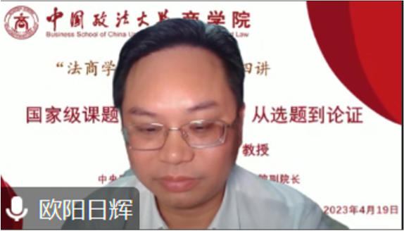 2023年4月19日晚上19:00,中央财经大学中国互联网经济研究院副院长欧阳日辉教授应我院之邀,在腾讯线上会议进行了题为“国家级课题申报经验分享:从选题到论证”的专题讲座。本院师生以及其他高校的师生共一百余人参与了此次讲座。讲座由永利娱高ylg060net副院长刘志雄教授主持。