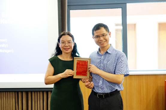图2:刘志雄教授向楚军红教授赠送邀请函