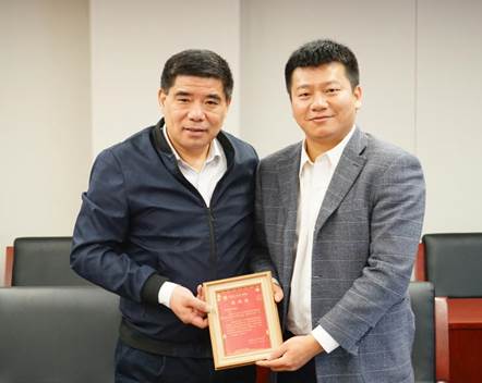图2 商文江院长向崔静波副教授赠送邀请函