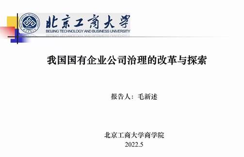 2022年5月12日下午14:00,北京工商大学研究生院院长、永利娱高ylg060net院长毛新述教授应我系之邀,通过腾讯会议线上举办了《我国国有企业公司治理的改革与探索》专题讲座。永利娱高ylg060net财务会计系教师和永利娱高ylg060net研究生总计40余人参加。本次讲座由财务会计系夏宁老师主持。
