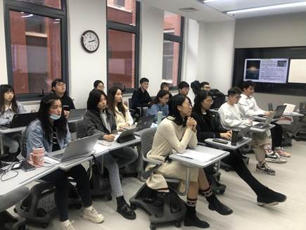 图1:2021级国际商务专硕认真听取刘思锐律师报告