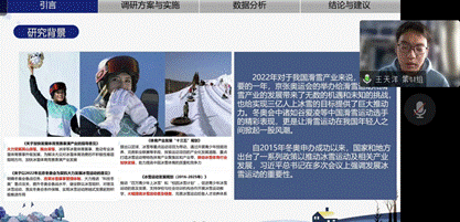 经过第一轮线上理论知识竞赛的选拔,我校共有17支来自不同学院、年级的参赛队伍参加此次校内选拔赛。各参赛队伍选题新颖多样,涉及经济、体育、文化、养老、医疗等领域。各队立足现实问题,结合法商专业知识,灵活运用统计学、大数据等分析方法,对研究成果依次进行展示和答辩。评委老师从选题、方案设计、研究方法、结论与建议等各方面对参赛队伍进行提问以及细致点评。