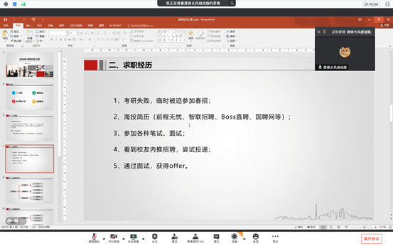 优秀毕业生的精彩分享内容丰富实用,干货满满,受到了大家的广泛认可。最后,在参会同学与嘉宾的互动之后,本次就业指导分享会圆满结束。