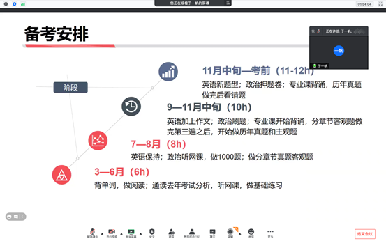 郭达同学也就研究生入学考试的“择校、备考战略、时间分配等”向大家做了详细、系统的介绍。