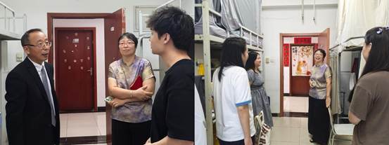走进新生寝室,韩文生书记首先关切地询问了同学们的入住情况,从行李安置是否顺利到生活设施是否完备,细致的关怀让同学们倍感亲切。在与新生的交流中,韩书记特别强调,研究生阶段不仅是学术深耕的关键时期,更是身心健康发展的重要阶段。他鼓励同学们在专注专业学习、探索学术领域的同时,务必抽出时间加强体育运动,无论是校园内的篮球场、羽毛球场、乒乓球馆,还是各类社团,都可以成为大家释放压力、强健体魄的选择;同时也要积极发展课余爱好,通过兴趣爱好丰富校园生活、拓宽人际交往圈,以良好的身心状态应对研究生阶段的挑战与机遇。此外,韩书记还主动向同学们问起家乡与母校,从地域文化特色到本科学习经历,轻松的对话氛围迅速拉近了与新生的距离,让同学们在陌生的环境中感受到了来自学院领导的关怀与温暖。