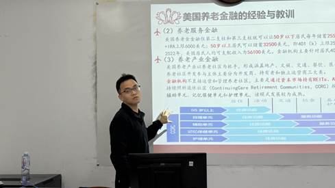 李鑫同学以“养老金融化与不平等的生成:基于中美比较的审视与中国路径的反思”为题指出金融化通过经济租金转移、劳资重构与风险转嫁三大机制加剧社会不平等这一内在逻辑。同时进一步对比中美养老金融实践,认为美国模式因市场化、证券化与责任个人化而固化不平等,中国则面临三支柱失衡与公平缺失的挑战。据此提出,中国应加强顶层设计、强化再分配职能并发展普惠金融,探索一条兼具效率与公平的中国特色养老金融道路。